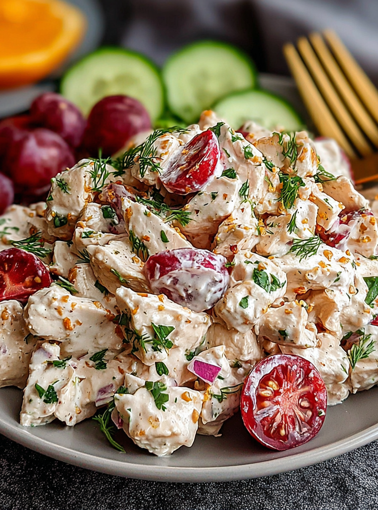 This Greek Yogurt Chicken Salad combines tender chicken, crisp veggies, and a tangy dressing, making it a refreshing choice for picnics or light lunches.