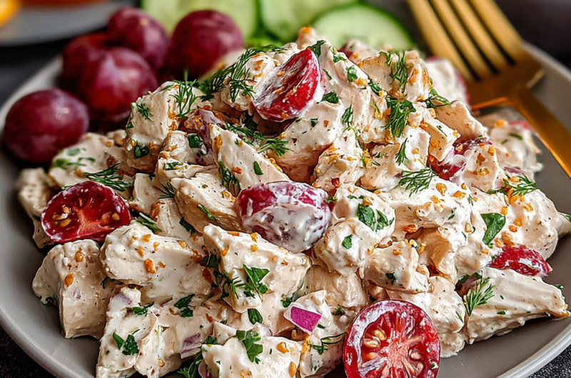Using Greek yogurt instead of mayonnaise adds a tangy twist that brightens the flavors while keeping the salad light. This recipe is customizable, allowing you to add your favorite ingredients or adjust the seasoning to suit your palate. The combination of tender chicken, crunchy veggies, and the creamy base makes for a perfect balance of textures and tastes.